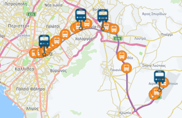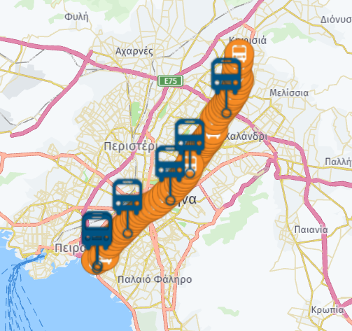 - קו 230 (אקרופולי - זוגרפו ) מסלול נסיעה ממרכז העיר לחלק המזרחי של העיר